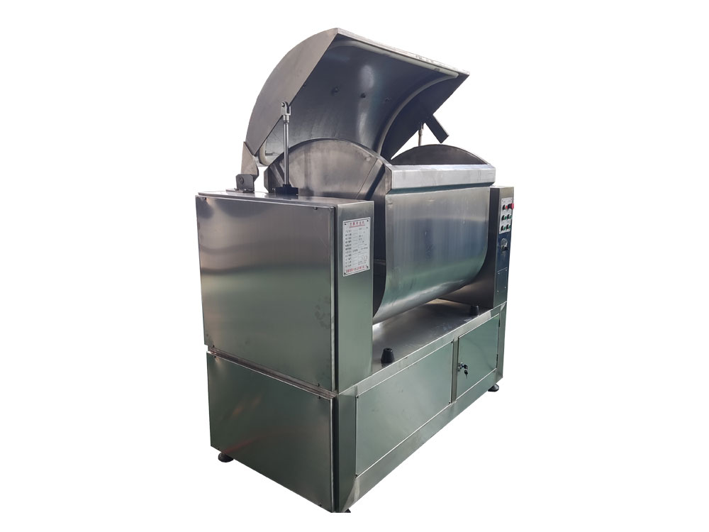 →新型臥式不銹鋼自動(攪拌)和面機(jī)  →型號50/75/100/150/200/300/500型  →功能  適合攪拌各種韌性面團(tuán)。以制作饅頭、餃子、餛飩、包子皮等。更換攪拌器,還可和制作酥性面團(tuán),以制作各類糕點(diǎn)、湯圓、餅干以及各種餡料。同時還適用于化工醫(yī)藥等行業(yè)中的同類作業(yè)。是部隊(duì)、機(jī)關(guān)、學(xué)校、酒店、廠礦、食堂可選產(chǎn)品?!  厣 ?、設(shè)備配備智能觸控顯示屏,參數(shù)自由設(shè)定,可手動攪拌、可一鍵攪拌?! ?、設(shè)備由PLC控制,可實(shí)現(xiàn)自動起蓋、自動計(jì)量加水、自動翻斗、自動排面功能?! ?、和面機(jī)采用花籃式軸套設(shè)計(jì),有效防止面團(tuán)受到污染,進(jìn)一步提高食品安全?! ?、攪拌器形式多樣,可生產(chǎn)多種面類食品的面團(tuán)?! ?、設(shè)備上蓋頂部設(shè)計(jì)有自動進(jìn)粉入口,方便自動投粉進(jìn)面斗內(nèi)?! ?、整機(jī)結(jié)構(gòu)美觀大方,操作方便,噪音小,性能穩(wěn)定可靠。  →主要技術(shù)參數(shù)產(chǎn)品型號額定容量(kg)攪拌轉(zhuǎn)速(rpm)主電機(jī)(kW)副電(kW)外形尺寸(長×寬×高)HWH 50型50263.750.551326×632×1510HWH 75型75263.750.551426×632×1510HWH100型100263.750.551526×632×1510HWH150型150257.51.51606×800×1672HWH200型20021112.21806×800×1672HWH300型3002518.51.852076×1050×1850HWH500型50022301.53014×1400×1980板式+彎輥花環(huán)+支撐刮底攪拌器花環(huán)刮底