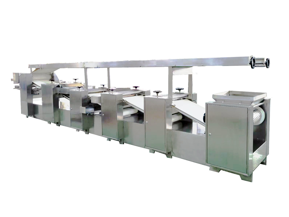 3、設(shè)備為變頻控制,每一道壓輥都采用單機驅(qū)動,通過測距傳感器,實現(xiàn)自動面帶張緊控制,多輥聯(lián)動??焖佥p松地制作大量面皮,提高生產(chǎn)效率。